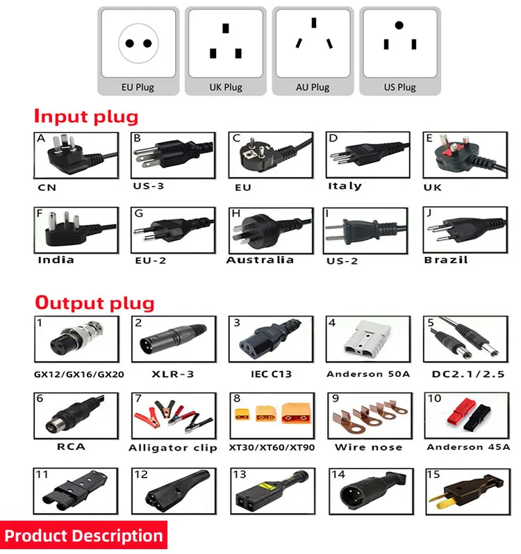 Há um resistor ajustável dentro do carregador, que pode ajustar a tensão e a corrente dentro de uma determinada faixa, e o carregador de alumínio suporta plugues de saída personalizados
