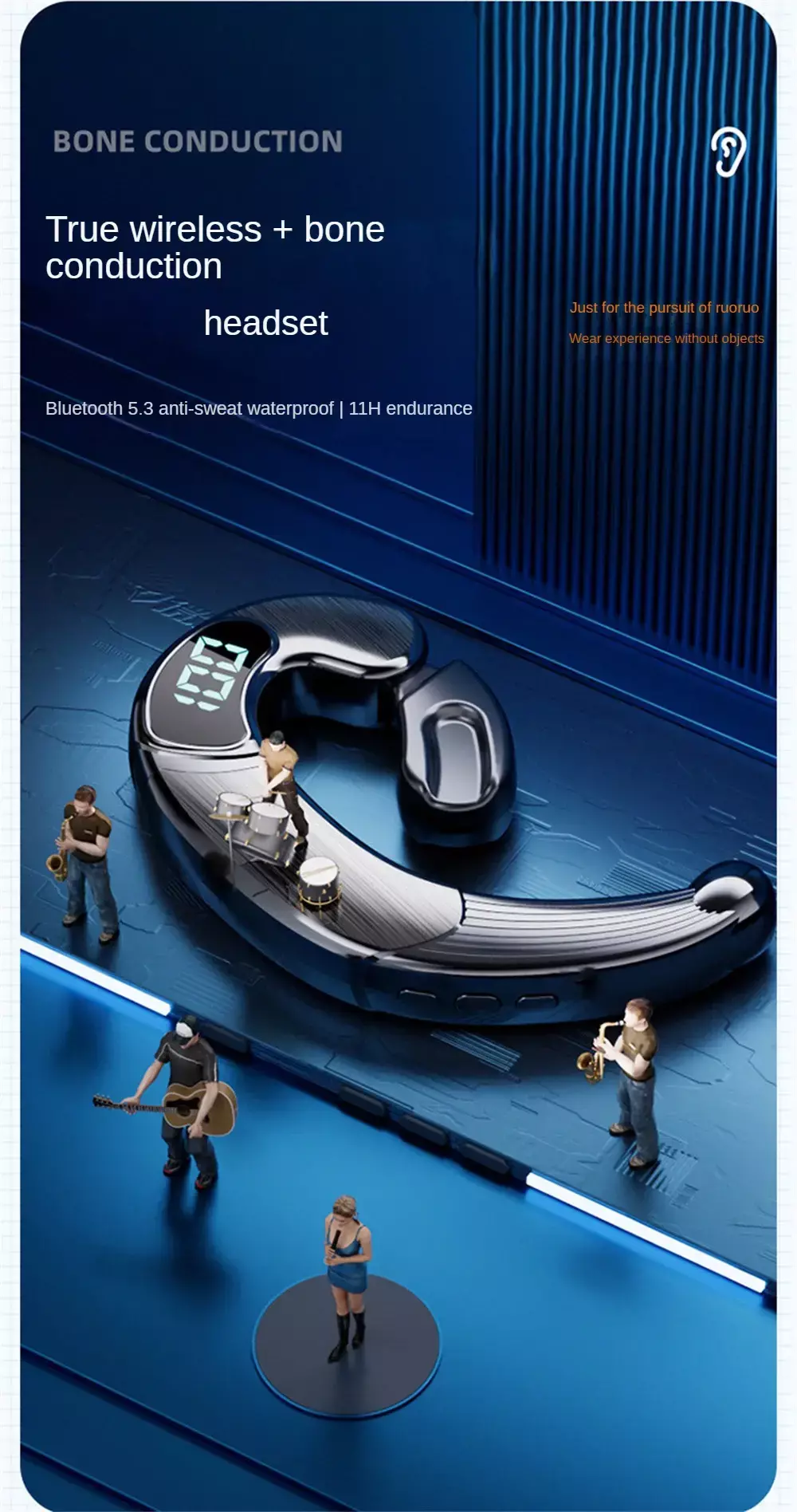 Descrição:Nome do produto: auricular compatível com bluetooth condução óssea real